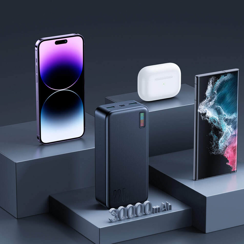 Acumulator Extern Joyroom Dazzling Series 30000mAh, 22.5W LED, 2xUSB, Type-C, Micro-USB Negru