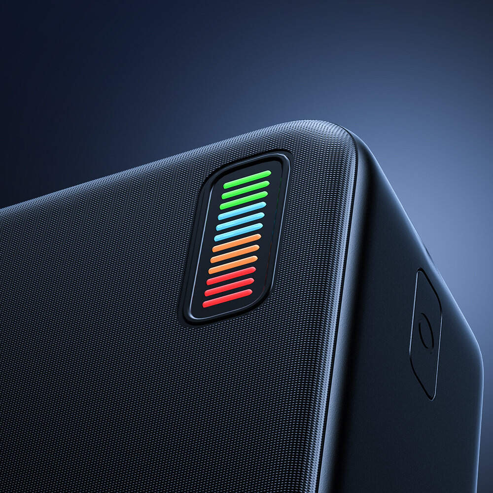 Acumulatorul Extern Dazzling Series 30000mAh de la Joyroom, este un powerbank cu o capacitate de 30000mAh, care este perfect pentru utilizarea de zi cu zi, incarcand rapid si eficient dispozitivele dumneavoastra. Carcasa din materiale de inalta calitate (ABS si PC) au un finisaj excelent, foarte elegant avand incorporat 12 indicatoare LED multicolore indicand cu exactitate puterea ramasa in acumulator.