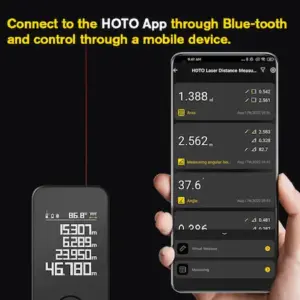 Telemetrul suporta Bluetooth, ceea ce permite operarea simpla prin aplicatia HOTO. Acest lucru va permite sa inregistrati rezultatele masuratorilor in timp real si sa faceti fotografii ale obiectelor, apoi sa le scrieti dimensiunile. In plus, puteti crea modele de camera si sa introduceti dimensiuni.