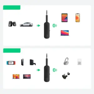 Receptorul si transmitatorul Ugreen CM403 este un gadget 2-in-1 . Va permite sa comutati liber intre transmisia si receptia sunetului pentru televizoare, difuzoare si alte dispozitive care nu ofera conectivitate wireless . Bluetooth 5.0 asigura o transmisie audio stabila , iar mufa mini jack flexibila de 3,5 mm ofera un confort deosebit . Bateria tine pana la 8 ore de functionare a dispozitivului !