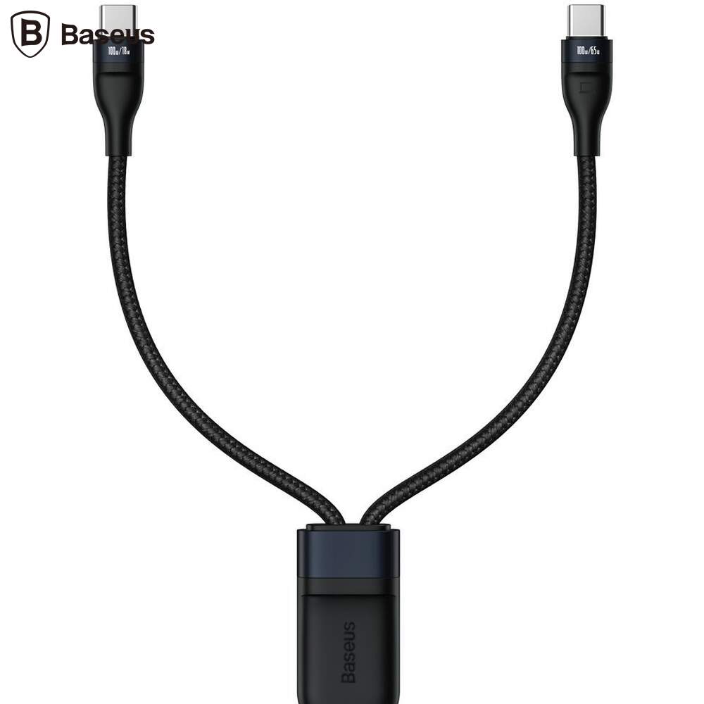 Cablu 2 in 1, Baseus, USB-C – Tip-C/Tip-C PD, 100 W, 1.5 m, Negru
