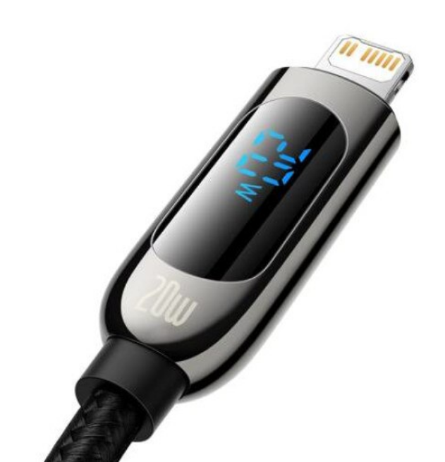 Acum puteti incarca instantaneu iPhone-ul si transfera fisiere la viteze de pana la 480 Mbps. Cablul USB-C la Lightning de la Baseus accepta incarcare rapida PD 20W si, datorita afisajului incorporat, ii puteti verifica puterea in timp real. De asemenea, produsul este extrem de durabil, iar cipul sau avansat asigura o utilizare sigura si va protejeaza dispozitivele de daune. Produsul accepta incarcare rapida PD 20W, ceea ce inseamna ca poate, de exemplu, restabili 60% din energia smartphone-ului dvs in doar 30 de minute. Produsul este, de asemenea, compatibil cu PD 18 W si se potriveste cu majoritatea modelelor de telefoane si tablete Apple. Acum puteti verifica viteza de incarcare curenta cu o simpla privire. Cablul este echipat cu un ecran mic, dar usor de citit, care afiseaza puterea in timp real. Astfel, puteti urmari performantele sale si va puteti bucura de acces constant la informatii utile. Nu va faceti griji cu privire la securitatea dispozitivelor dvs. Cipul inteligent asigura o incarcare stabila si fara pericole.