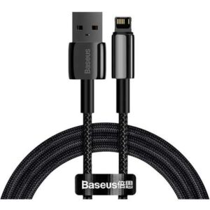 Cablu alimentare si date Baseus, Tungsten Gold, Fast Charging, USB la Lightning 2.4A braided 1m, Negru
