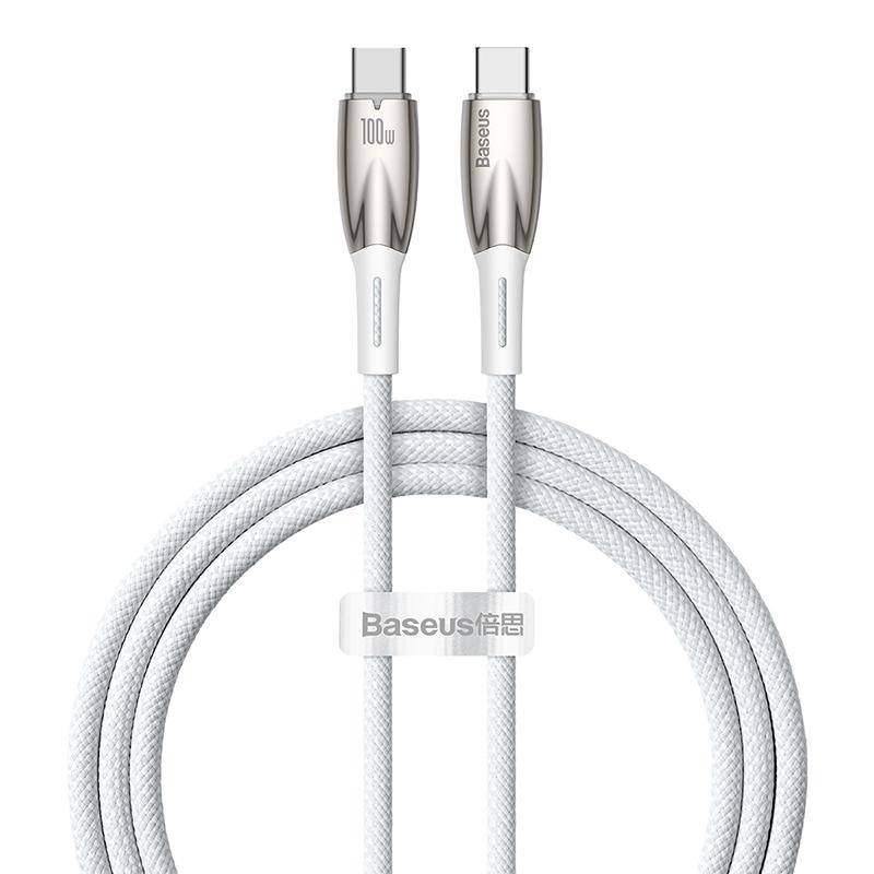 Cablu Date Si Incarcare, Baseus Glimmer Series, USB Type-C la USB Type-C, Power Delivery, 100W, 480 Mbps, 2m, Alb