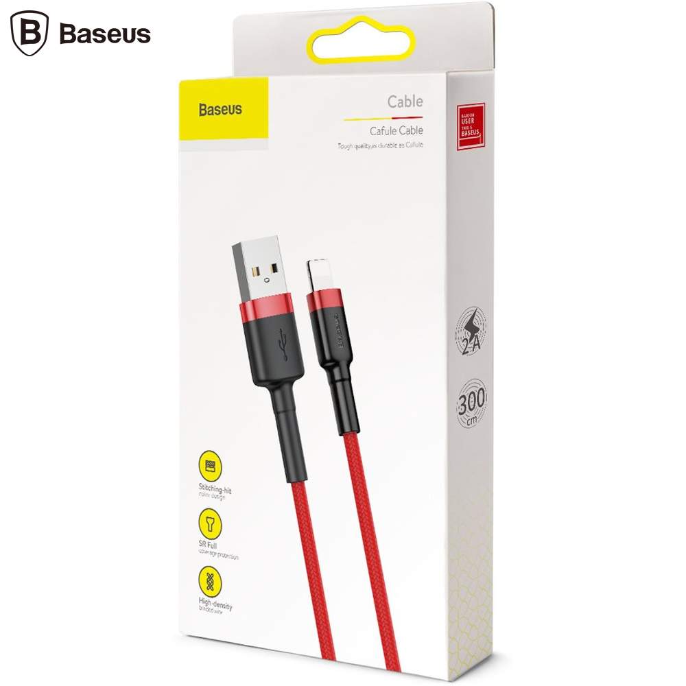 | Cablu Date si Incarcare Baseus USB – tip Lightning Cafule, 2A, 3 m, CALKLF-R09, Rosu |