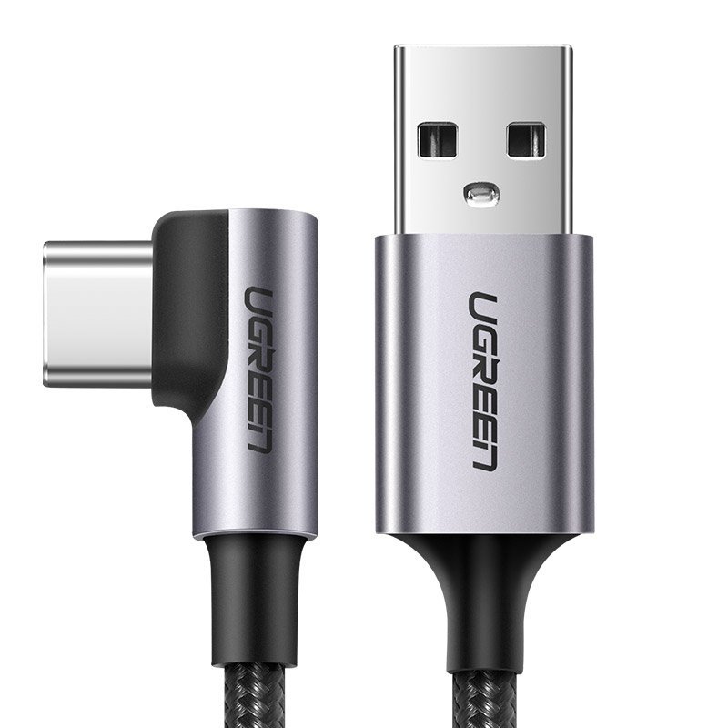 Cablu Date si Incarcare Ugreen 90 grade USB Type C, 3A Fast Charge, Negru + Gri – 2 m