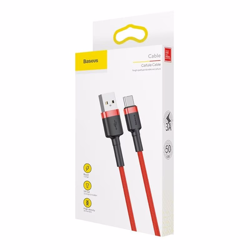 Baseus Cafule este un cablu USB – USB tip C de inalta calitate, conceput pentru transmiterea datelor si incarcarea dispozitivului. Datorita constructiei sale intarite, are o rezistenta sporita la rupere (protectie suplimentara la cablu la priza si o impletitura mai groasa disponibila doar in versiunea Cafule). In plus, in constructie au fost utilizate materiale care intaresc structura dopurilor (de exemplu, aluminiu).
