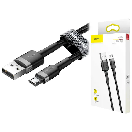 Cablul original Baseus cu un terminal MicroUSB cu doua fete este dedicat tuturor telefoanelor cu iesire MicroUSB.