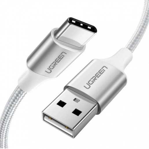 Cablu de date nichelat USB-C QC3.0 UGREEN 1 m Alb cu capat din aluminiu