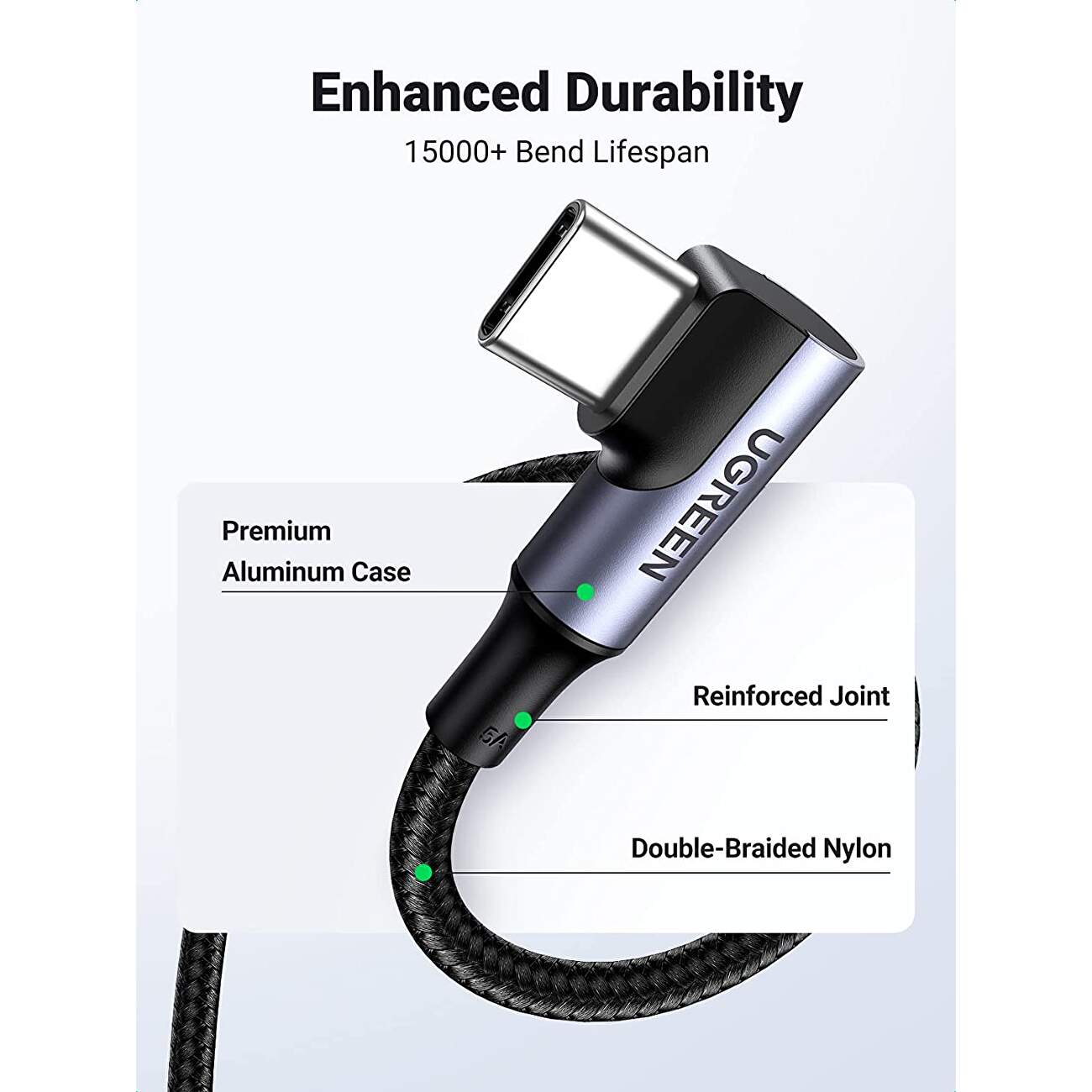 Cablu de date si incarcare UGREEN 70696 USB Type-C la USB Type-C, 90 grade, 100W, 5A, Negru – 1 m