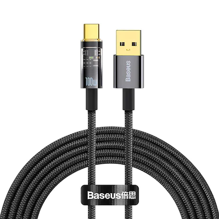 Cablu de date si incarcare USB la USB-C Baseus Explorer, 100W, Fast Charging, 2m, Negru