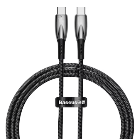 Cablu pentru incarcare si transfer de date Baseus Glimmer, 2x USB Type-C, Fast Charge, PD 100W, 1m, Negru – viteza de transfer 480 Mps, realizat din aliaj zinc si nailon.