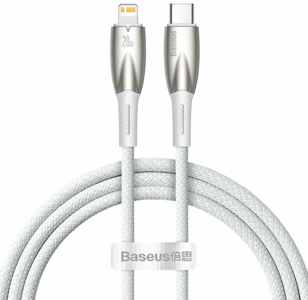 Cablu pentru incarcare si transfer de date Baseus Glimmer, USB Type-C/Lightning, PD 20W, 2m, Alb