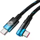 Cablu alimentare si date Baseus, MVP 2, Fast Charging, USB Type-C la USB Type-C 100W unghi 90 grade brodat 2m, Negru + Albastru