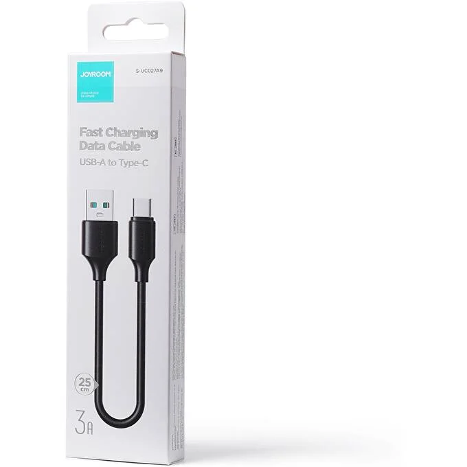 Cablu pentru incarcare si transfer de date Joyroom S-UC027A9, cu conector USB la USB Type-C, 3A, lungimea cablului de 25cm, culoare negru