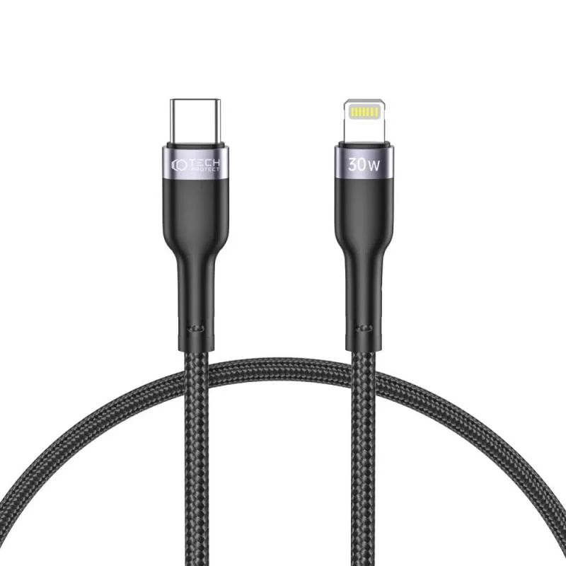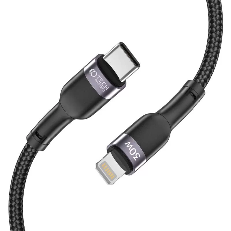 Cablu pentru incarcare si transfer de date TECH-PROTECT UltraBoost, USB Type-C/Lightning, PD 30W, 3A, 25cm, Negru