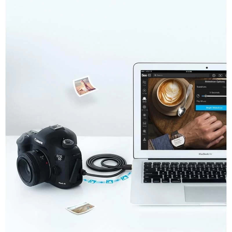 Cablul este compatibil cu toate dispozitivele echipate cu un conector mini USB. Produsul va fi util atunci cand incarcati echipamente sau transferati date, cum ar fi de la o camera digitala la un laptop.