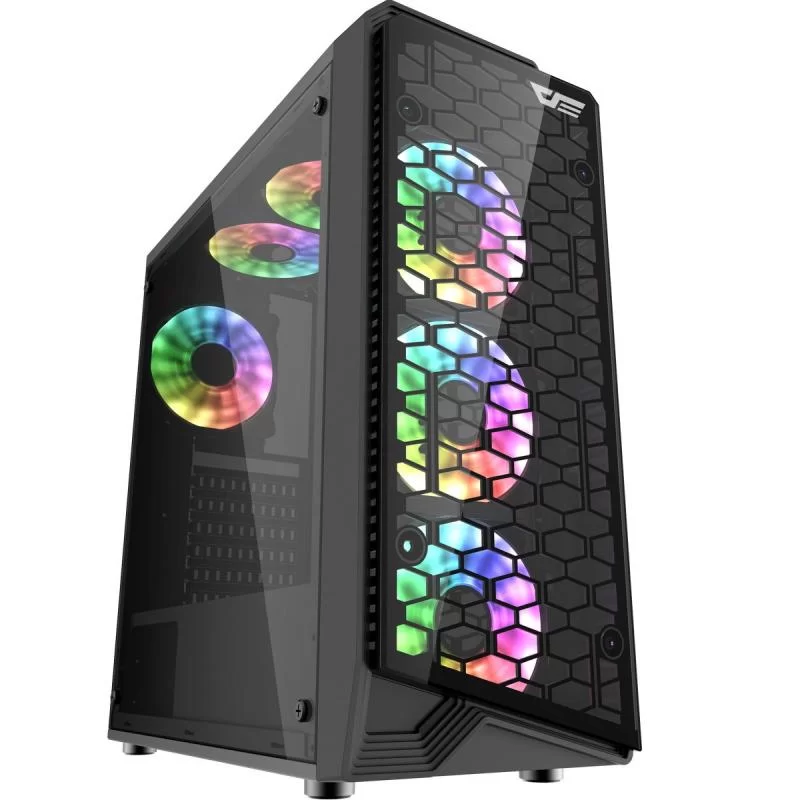 Carcasa Darkflash Water Square are un design atent, modern si va permite sa obtineti un efect de gaming elegant. Este extrem de robusta si rezistenta la deteriorare. Puteti instala pana la 8 ventilatoare in carcasa. Printre altele, este echipata cu porturi USB si un buton de pornire. Panoul sau frontal atrage atentia cu un model interesant de tip fagure. Este transparenta, ceea ce permite realizarea unor efecte fantastice cu utilizarea accesoriilor RGB. Atat panoul frontal, cat si cel lateral sunt realizate din sticla securizata rezistenta, cu o grosime de 4 mm. Partile ramase ale carcasei sunt realizate din SPCC de inalta calitate. Datorita acestui fapt, produsul arata si mai bine. In plus, panoul superior are un design magnetic. Este conceputa pentru a reduce riscul de patrundere a prafului in interiorul carcasei si pentru a va facilita curatarea. Nu va faceti griji cu privire la supraincalzirea computerului. Produsul va gazdui pana la 8 ventilatoare (vandute separat) si este echipata cu un canal de racire intern. Deasupra capacului sursei de alimentare este prevazut spatiu pentru 2 ventilatoare, astfel incat sa puteti obtine o racire mai eficienta si un efect RGB interesant. Printre altele, Water Square 5 poate sustine 2 unitati SATA 2.5 (HDD sau SSD), un VGA de 340 mm si un cooler CPU de 165 mm. Un spatiu pentru o sursa de alimentare poate fi gasit in partea de jos a carcasei. Bucurati-va de operarea simpla si convenabila a computerului. Carcasa este echipata cu 2 porturi USB 2.0 si un port USB 3.0 care va vor permite sa transferati rapid fisiere. Produsul are, de asemenea, un buton de pornire incorporat si porturi pentru a conecta un microfon si casti. Mai mult, unul dintre porturi accepta modul de control al efectelor de iluminare RGB.