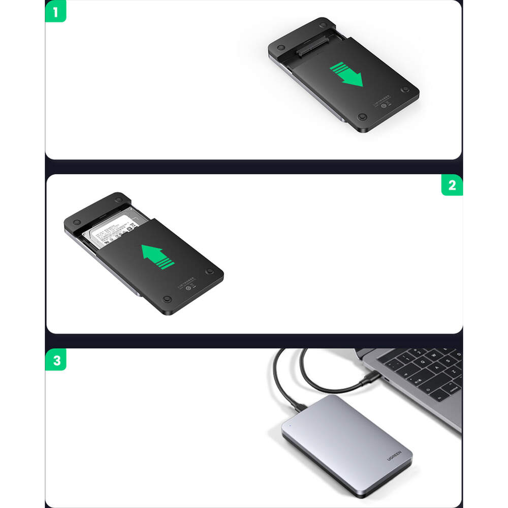 Carcasa Rack pentru HDD / SSD Extern, Ugreen CM300 70499, Drive 2.5 inch, USB-C 3.1, SATA, UASP