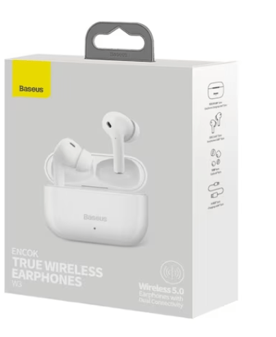 Casti fara fir Bluetooth 5.0, Baseus W3 TWS Earbuds casti impermeabile IP55 alb, HRT-70226