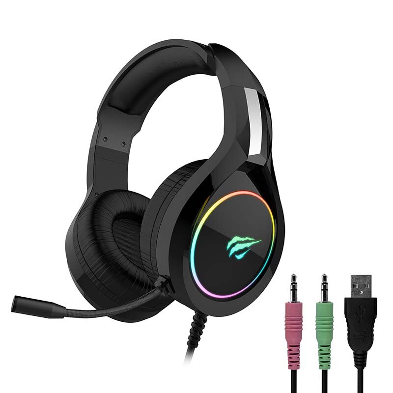 Casti gaming cu microfon HAVIT H2232d, iluminare RGB, difuzoare 50mm, control volum, conectare prin USB & Jack 3.5 mm x 2, Negru