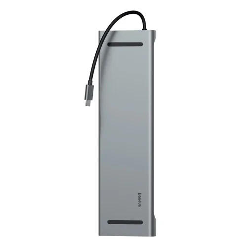 Hub 11 in 1, Baseus Enjoyment MacBook / notebook stand HUB USB Typ C PD / VGA / HDMI / RJ45 / USB 3.0 / SD, TF, micro SD Dark for MacBook / PC, gri (CATSX-G0G)