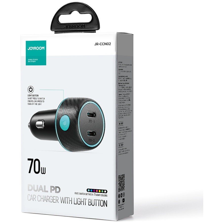 Incarcator auto Joyroom JR-CCN02, 2x USB-C, Lumina LED, Quick Charge 3.0, 70W, Negru