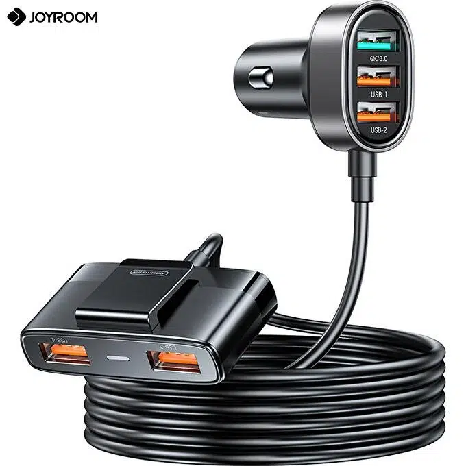 Incarcator auto Joyroom JR-CL03 cu 5 porturi USB. Lungime cablu 1.5m, culoare: negru – este un incarcator minimalist, caracterizat prin incarcare foarte rapida.