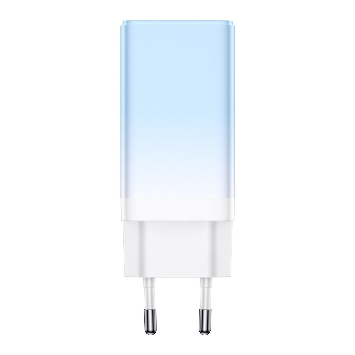 Incarcator de retea Baseus CCGP050103, tehnologie GaN, 2 USB Tip C, USB, 65W, functie de incarcare rapida QC PD, cablu de incarcare rapida USB Tip C 1m inclus, 100W, Albastru