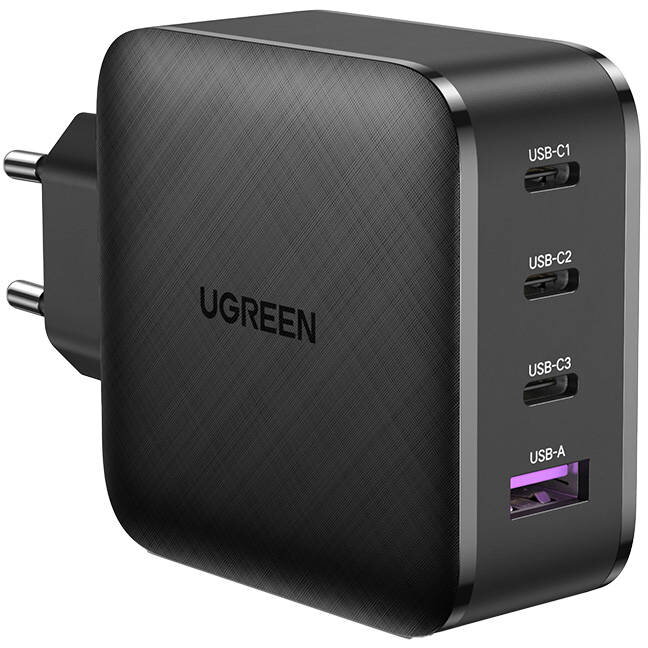 Incarcator de retea INCARCATOR retea Ugreen, “CD104” Quick Charge 3.0 65W, 3 x USB Type-C 5V/3A, 1 x USB-A 5V/3A, negru “70774”