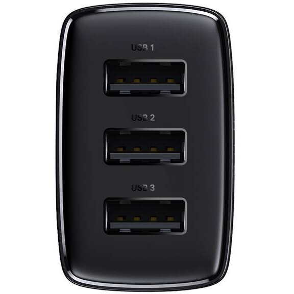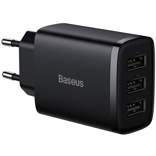 Incarcator retea Baseus Compact 17W, Fast Charge, 3 x USB 5V/2.1A, negru CCXJ020101
