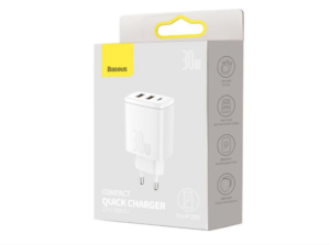 Incarcatorul Retea Compact Quick Charge de la Baseus este suficient pentru calatoriile tale ce poate alimenta trei dispozitive in acelasi timp,iar dimensiunea mica il face usor de pus intr-o geanta sau buzunar.