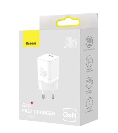 Incarcator retea Baseus GaN3 CCGN010102, Quick Charge 30W, 1 x USB Type-C 5V/3A, Alb