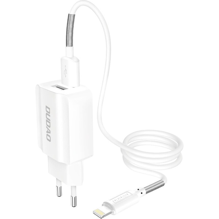 Incarcator retea Dudao A2EU cu cablu tip Lightning, 2.4A, 2 X USB, Alb