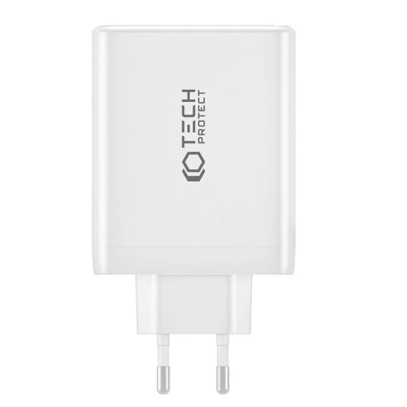 Incarcator retea TECH-PROTECT NC100W GaN, USB si 3x USB-C, Quick Charge 3.0, Power Delivery 100W, Alb