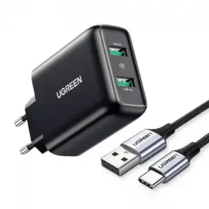 Incarcator, Ugreen, 2 x USB-A, 18 W, Negru