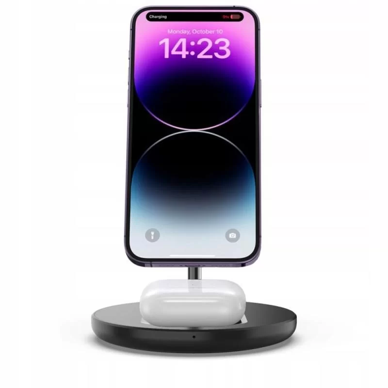 Incarcator Wireless 2 in 1 TECH-PROTECT A21, Magnetic MagSafe, 15W, Cablu USB-C 1m inclus, Negru