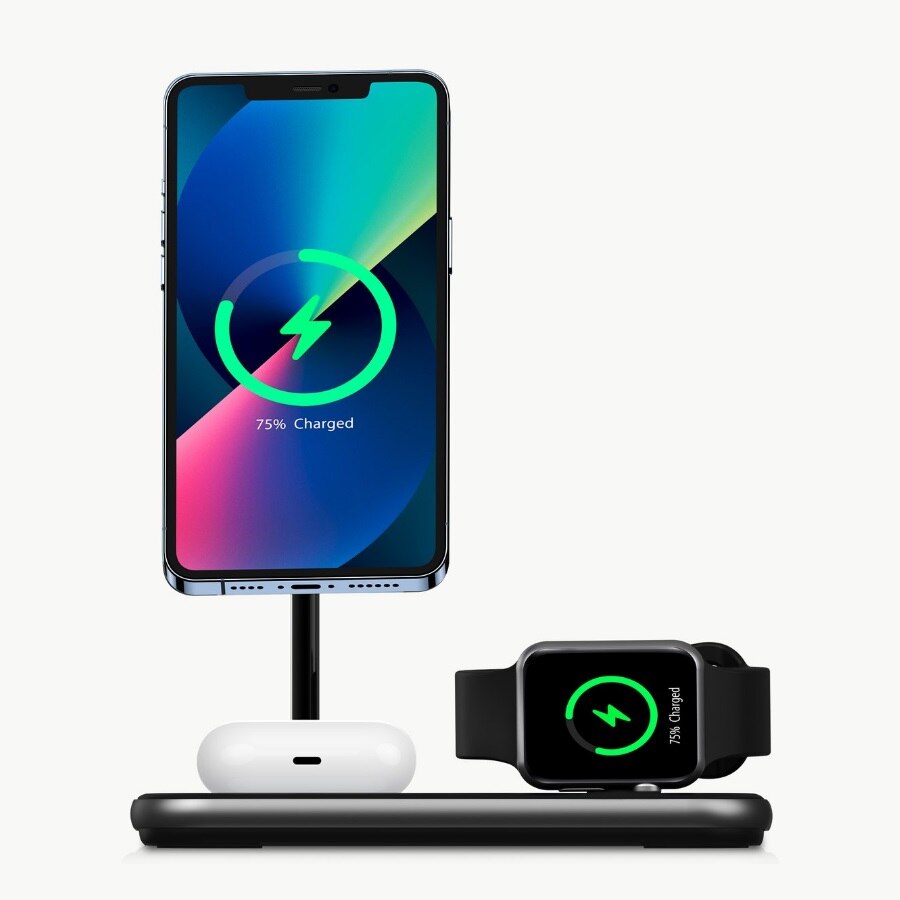 Incarcator wireless 3in1 Choetech T589-F 15W compatibil cu iPhone 12/13/14, AiPords Pro, Apple Watch, Gri