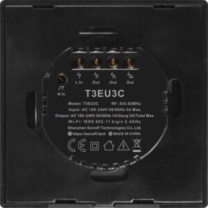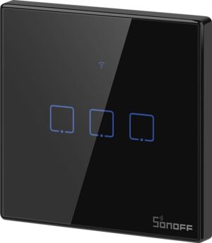 Intrerupator triplu cu touch Sonoff T3 EU TX din sticla, ce poate fi controlat tactil, prin aplicatia pentru smartphone. Intrerupatorul nu necesita un hub intermediar, el putand fi conectat direct la routerul wireless. Dupa conectare Intrerupatorul Sonoff T3 EU TX poate fi controlat de oriunde de pe telefonul mobil.