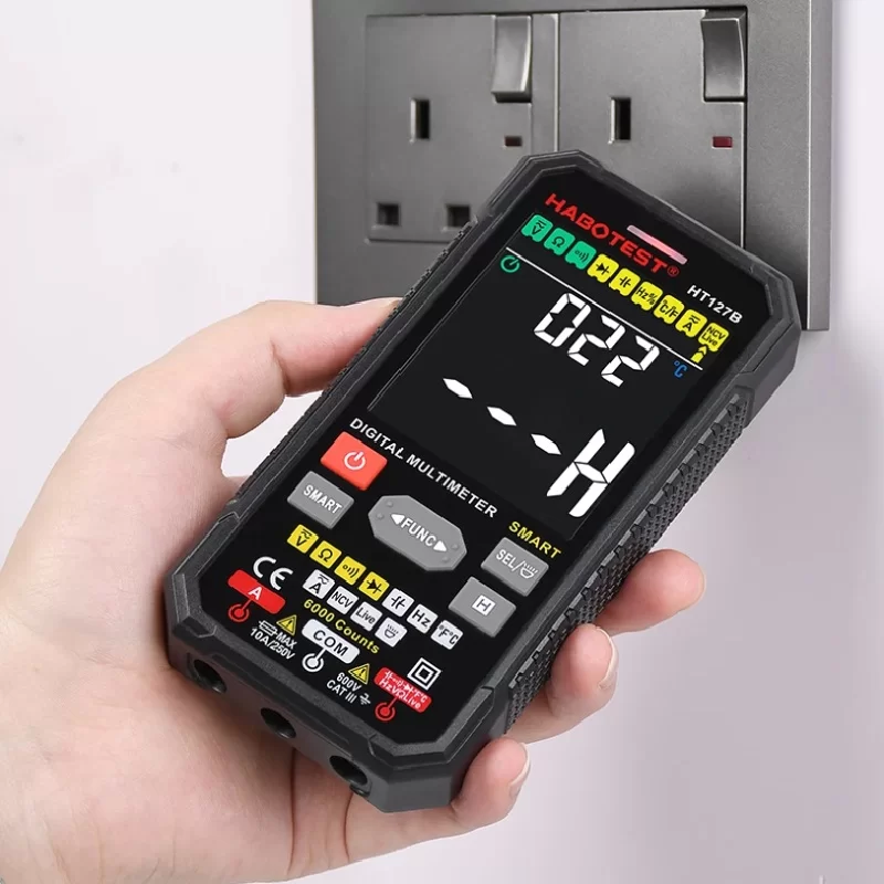 Multimetrul universal digital Habotest HT127B este un dispozitiv la indemana care surprinde prin enormitatea capacitatilor sale. Va permite sa masurati cu mare precizie tensiunea si curentul AC si DC, rezistenta, temperatura sau capacitatea, printre altele. In plus, ofera o functie Live Test, permite testarea diodelor, detectarea tensiunii fara contact (NCV) si multe altele. Important este ca multimetrul are butoane practice cu ajutorul carora poti selecta eficient o functie.
