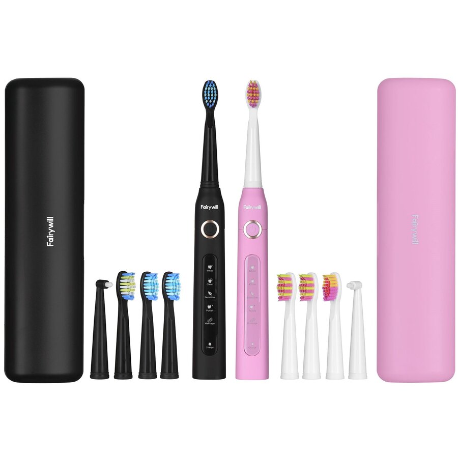 Pachet de familie 2 periute de dinti electrice Fairywill, sonice, 8 capete de periuta