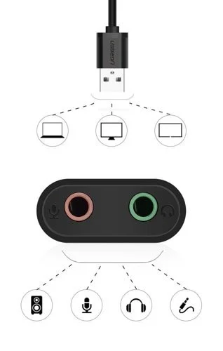 Placa de sunet USB externa UGREEN, 15cm, Negru