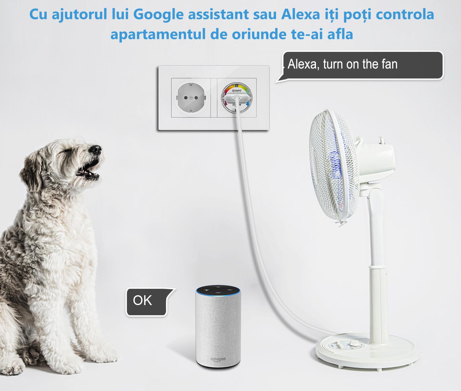 Dispozitivul functioneaza cu cele mai recente sisteme: Amazon Alexa si Google Home.