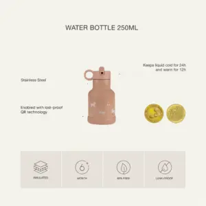 Noua sticlă de apă 250 ml design Dino, fiind de cea mai mică mărime și cea mai ușoară, a fost gândită pentru ca cei mici să o poată folosi cu mânuțele lor. Sticla pentru copii devine astfel un minunat suport pentru hidratarea zilnică. Copiii tăi nu își vor pierde sticlele datorita unui cod QR inovativ imprimat pe fundul sticlei. Având toate aceste caracteristici, aceasta este probabil cea mai bună sticlă mică de apă pentru copii.