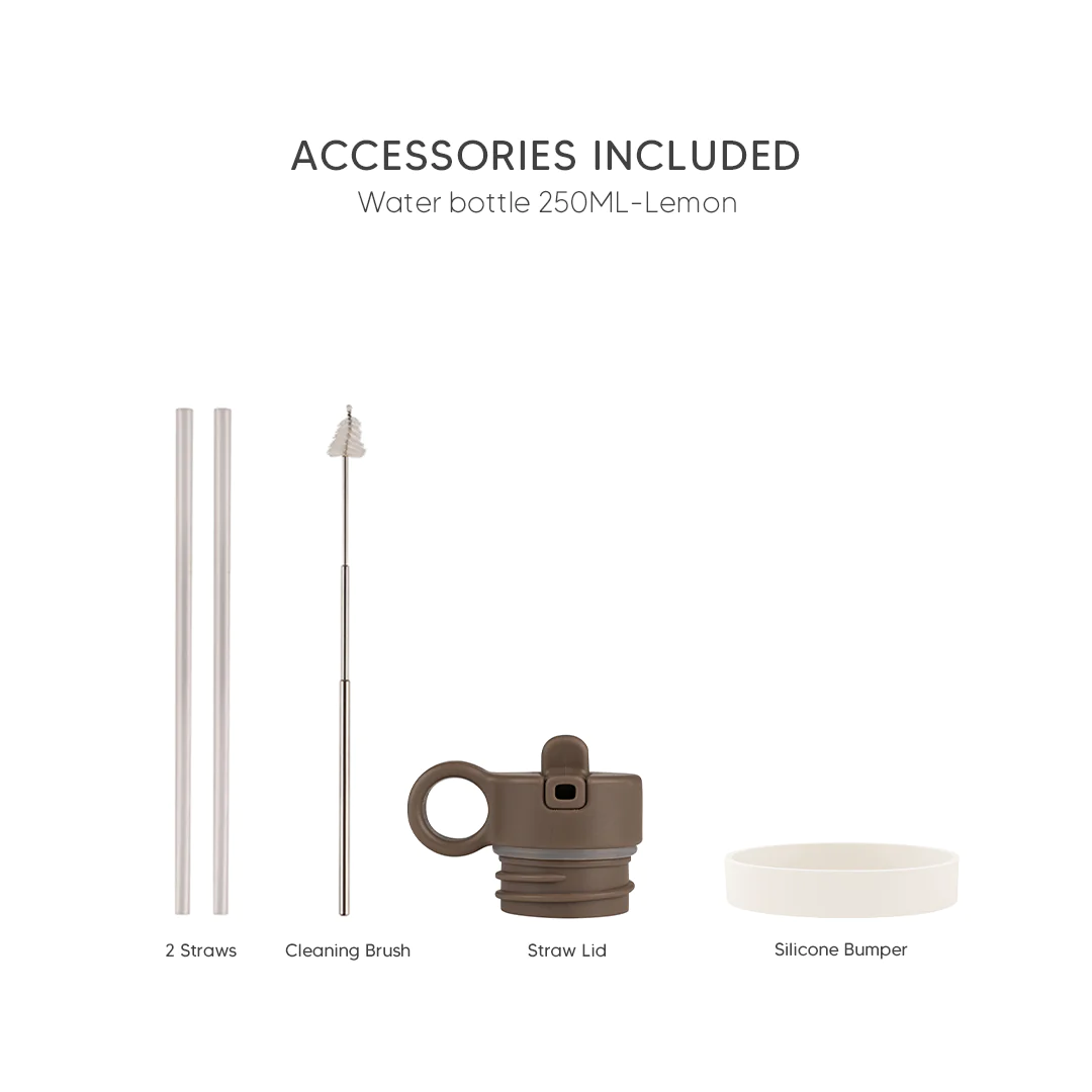Noua sticlă de apă 250 ml design Lămâie, fiind de cea mai mică mărime și cea mai ușoară, a fost gândită pentru ca cei mici să o poată folosi cu mânuțele lor. Sticla pentru copii devine astfel un minunat suport pentru hidratarea zilnică. Copiii tăi nu își vor pierde sticlele datorita unui cod QR inovativ imprimat pe fundul sticlei. Având toate aceste caracteristici, aceasta este probabil cea mai bună sticlă mică de apă pentru copii.