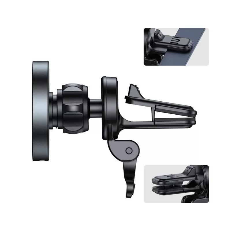 Tech-Protect V1 reprezinta o combinatie intre un suport convenabil pentru masina si un incarcator wireless super rapid care accepta tehnologia MagSafe cu o putere maxima de 15W. Magnetii puternici vor ajusta automat telefonul la suport, pastrandu-l intr-o pozitie stabila si sigura in timpul condusului chiar si in conditii dificile. Confortabil si usor de folosit, iti permite sa folosesti smartphone-ul in pozitie verticala si orizontala, iar bratul solid, reglabil ca lungime, combinat cu capul pivotant, ofera posibilitatea de reglare si confort de utilizare. Calitatea inalta a componentelor plastic ABS si policarbonat reprezinta o garantie a utilizarii pe termen lung. Instalarea suportului este extrem de simpla, doar degresati locul in care doriti sa lipiti accesoriul, strangeti maneta si este gata! Pentru a mentine proprietatile lipicioase ale ventuzei, spalati-o sub jet de apa inainte de a o reinstala. Dispozitivul de fixare in forma de carlig face posibila atasarea acestuia la orice grila din masina.